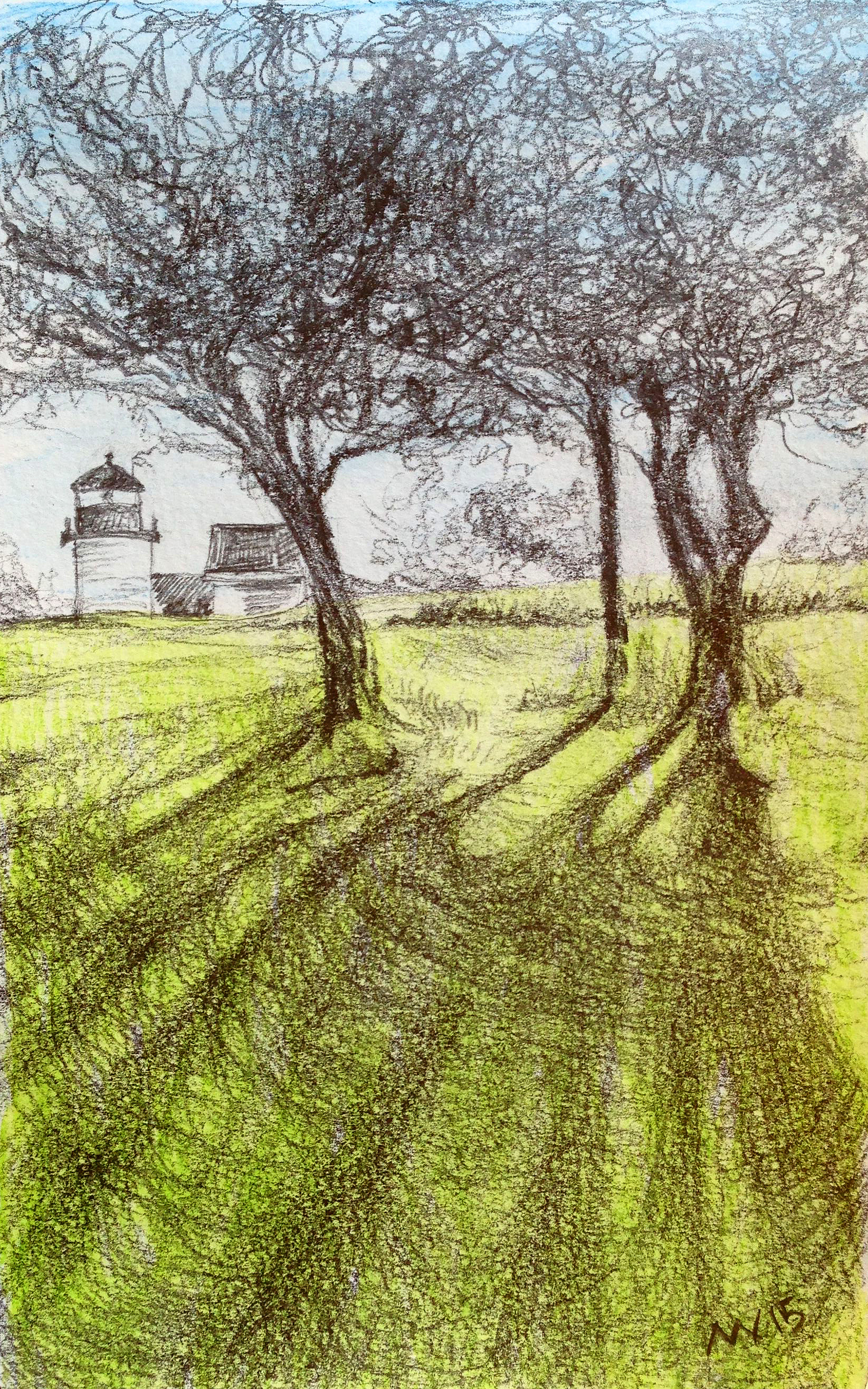 Trees. Black ink, little bit of color added.